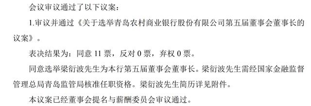 选举梁衍波为新董事长,标志着青农商行高管层开启“新老交替”。