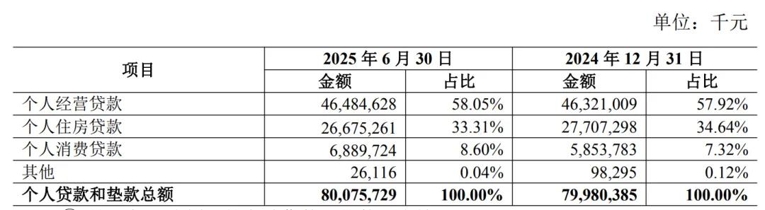 截至2025年6月末,青农商行个人贷款和贷款总额800.76亿元,占该行发放贷款和垫款总额的29.42%。其中个人经营贷464.85亿元,较上年末增长0.35%;个人消费贷68.90亿元,较上年末增长17.70%。