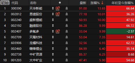 据Mysteel数据显示,今日MMLC电池级碳酸锂(早盘)价格较昨日上涨350元/吨,中间价报172250元/吨,锂电材料板块掀起涨停潮,永兴材料、盛新锂能、融捷股份、恩捷股份、多氟多等多股涨停。