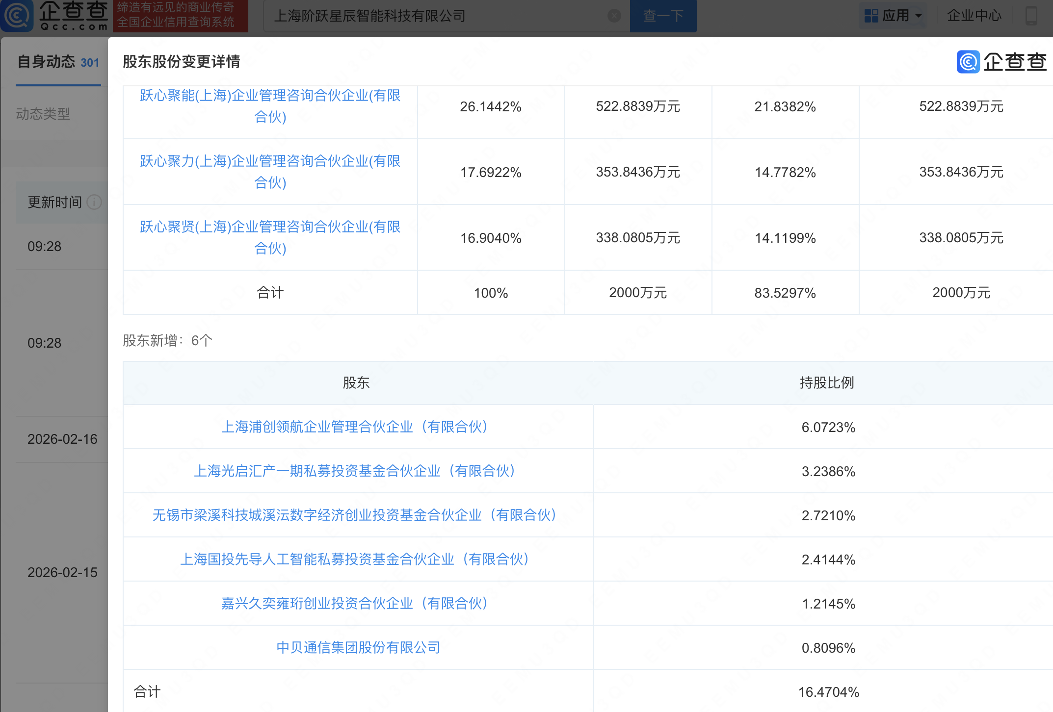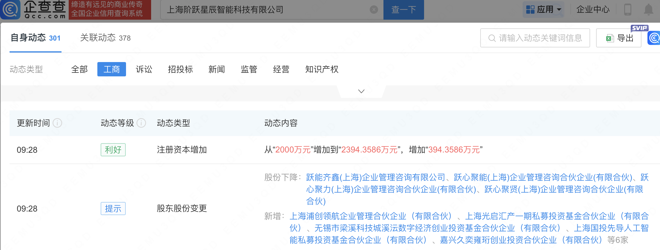企查查APP显示,近日,上海阶跃星辰智能科技有限公司发生工商变更,新增中贝通信(603220)等为股东,同时注册资本增至2394.36万元。企查查信息显示,该公司成立于2023年,法定代表人为印奇,经营范围包含:人工智能基础软件开发;人工智能双创服务平台;软件开发;人工智能通用应用系统等。公开信息显示,阶跃星辰(StepFun)是一家AI大模型公司。