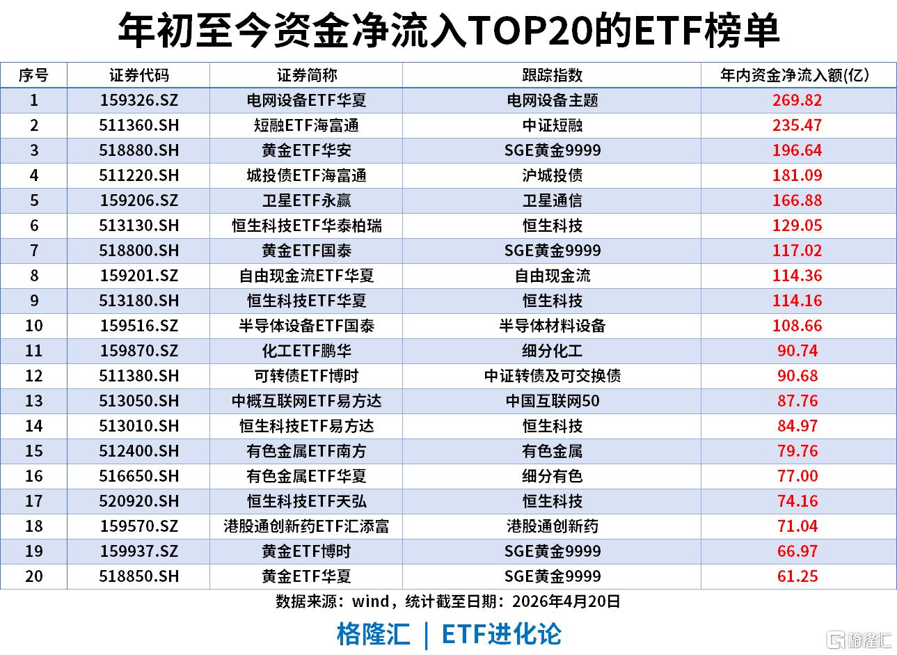 电网设备ETF华夏以269.82亿成为年度吸金王,能源电力赛道全年获资金最高度认可,成为贯穿全年的核心配置方向。