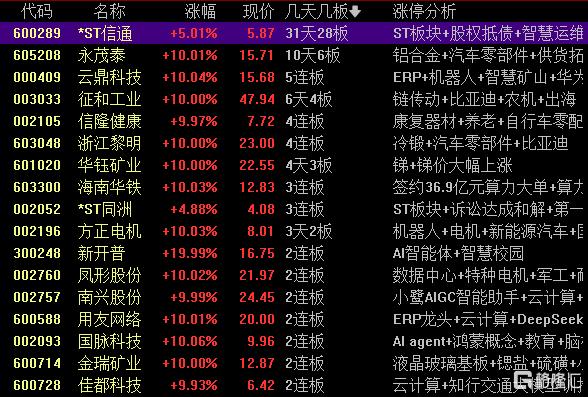 高位股方面,机器人板块云鼎科技5连板、信隆健康4连板;算力板块遭重挫,人气股群兴玩具、拓维信息跌停。