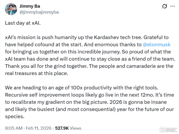 未曾等外界消化这一消息,次日上午,另一位联合创始人Jimmy Ba便紧随其后,同样在X平台确认离职。