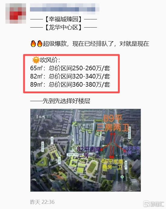 吹风折扣算下来,折后单价约3.8万—4.8万/㎡。