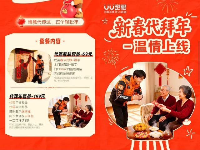 UU跑腿在声明中写道:“推出该项服务的初衷,是为了满足身在异地、行动不便或海外等无法返乡拜年群体的特定需求。希望通过此类服务,帮助他们传递牵挂与心意,弥补无法当面问候的遗憾,提供更好的情绪价值,并非对传统礼仪的亵渎与曲解。”