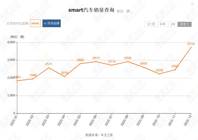 另据“车主之家”数据,2024年smart品牌的国内累计销量为33280辆,同比下滑约21.3%;进入2025年颓势仍未见扭转,全年销量进一步回落至30799辆,月均仅2567辆,较上年再跌7%以上。