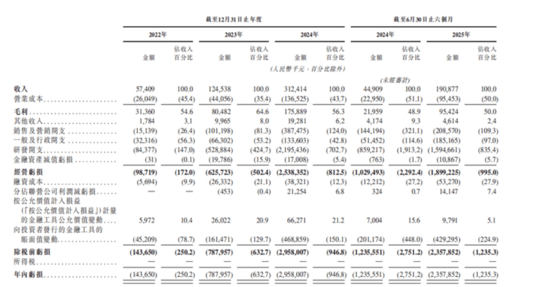 根据招股书,智谱已成为中国收入规模最大的独立大模型厂商之一。2022年至2025年上半年,分别实现营收5740万元、1.245亿元、3.124亿元、1.9亿元,年复合增长率达到 130%。
