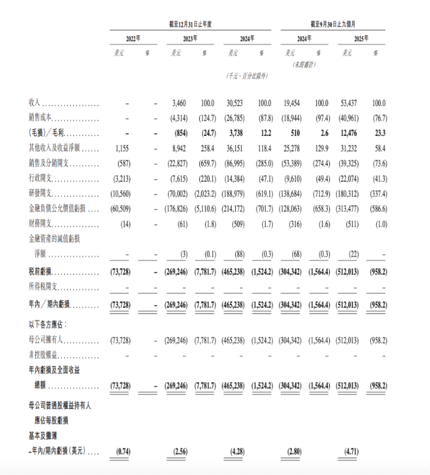 2022-2024年,智谱的净亏损分别为1.44亿元、7.88亿元、29.58亿元,2025年上半年亏损23.58亿元;同期,MiniMax净亏损分别为7370万美元、2.69亿美元、4.65亿美元。2025年前三季度为5.12亿美元。两者的亏损金额都在持续扩大,且尚不具备自造血能力。