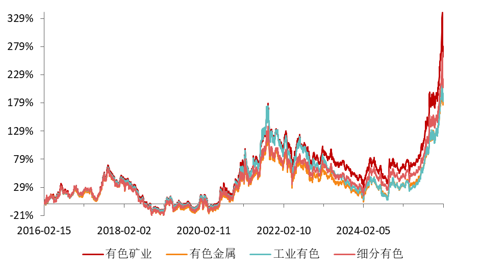 有色矿业ETF招商(159690)跟踪有色矿业指数,纯粹聚焦于上游资源开采企业,当有色金属价格(如铜价、金价、锂价)上涨时,这些公司的利润会直接、快速地提升,因此有色矿业指数表现出更强的价格弹性,贝塔值更高,在商品牛市或通胀环境中进攻性十足。截至2月6日,有色矿业指数近十年累计涨幅279.71%,相对同类指数弹性更高。