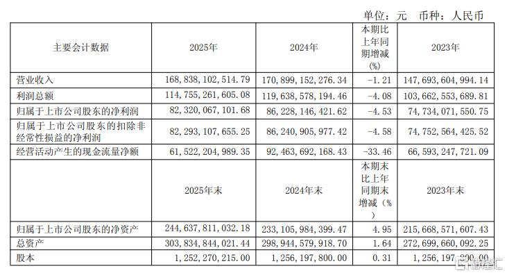 昨晚,贵州茅台披露2025年“成绩单”:全年以营收、净利双降收官。