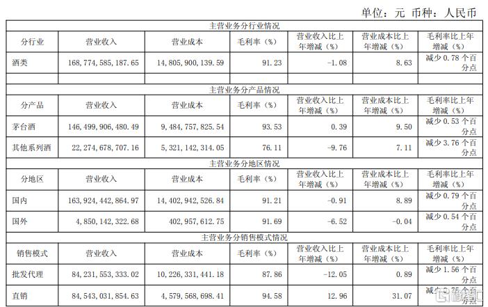 分销售模式来看,2025年茅台批发代理实现营收842.32亿元,同比下降12.05%;直销实现营收845.43亿元,同比增长12.96%。