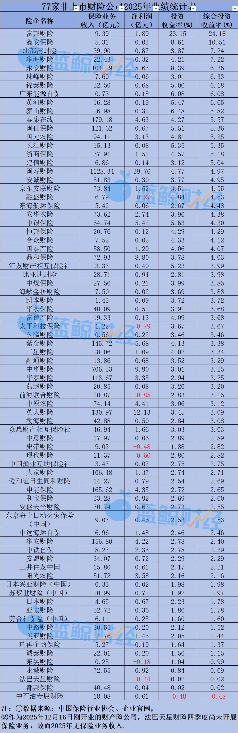 财险公司2025年投资能力一览:27家综合投资收益率超4%,富邦财险、鑫安保险领跑,仅中石油专属财险为负