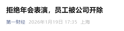 “拒绝年会表演,员工被公司开除”。