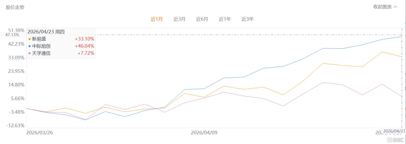 其实从市场走势就能看出来,中际旭创明显比新易盛强很多。