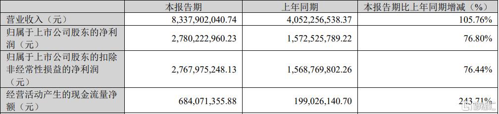 公司归母净利润27.80亿元,同比增长76.80%;但从环比来看,较2025年第四季度的32.05亿元下滑了13.25%;扣非净利润27.68亿元,同比增长76.44%。