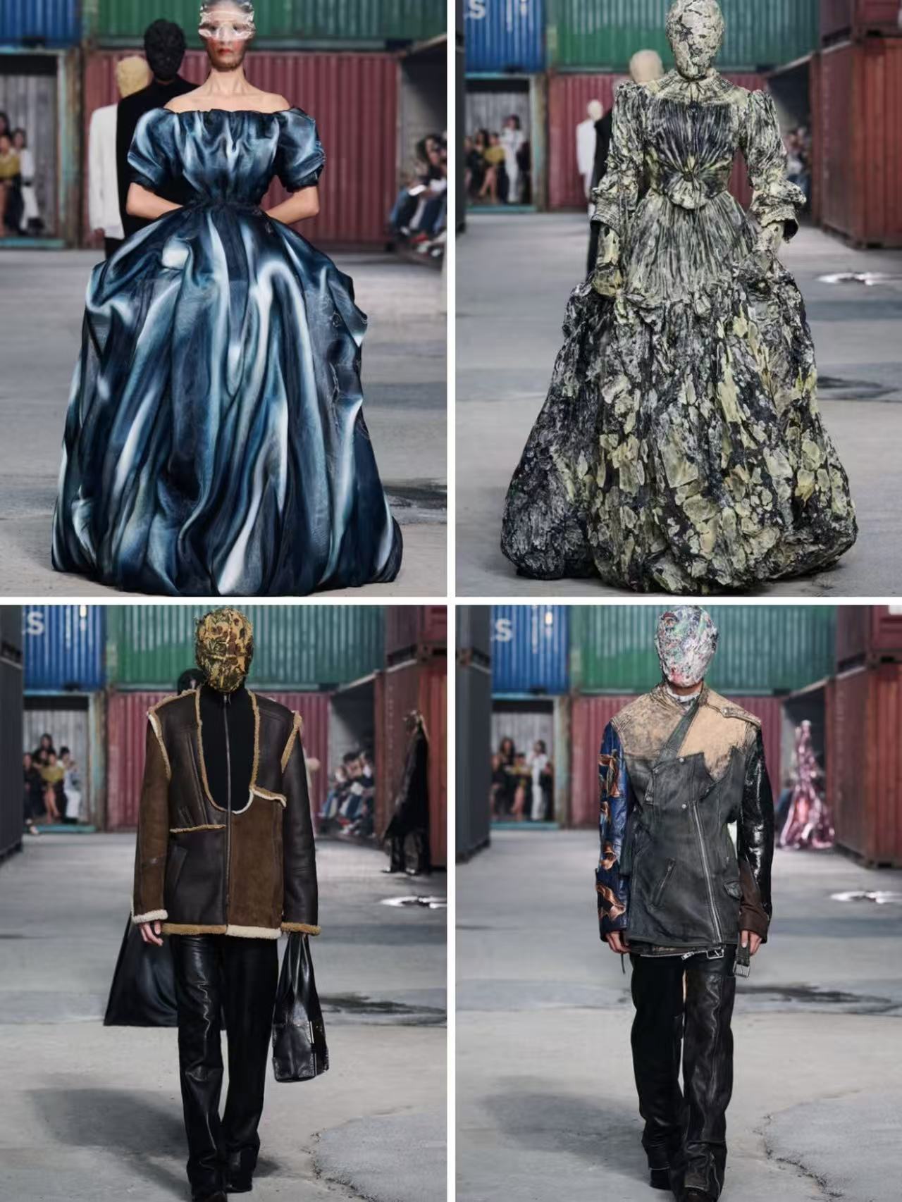 作为本次时装周压轴大秀,Maison Margiela以夜深复苏的巴黎跳蚤市场为灵感内核,围绕旧物再造、解构重组与复古执念展开,将成衣系列与Artisanal高级定制系列同台呈现,致敬品牌创立初期的经典发布传统。