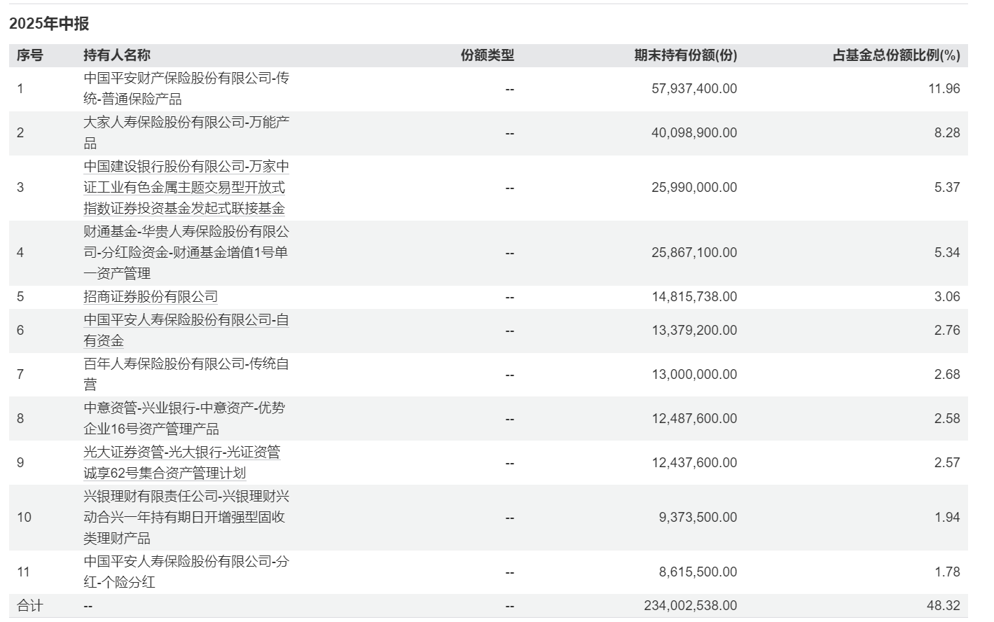 而加注工业有色ETF万家(560860)的资金中,不乏险资长钱机构。据基金2025年中报最新数据显示,该ETF机构投资者从2024年末的41%升至近60%,只隔了半年时间;前十大持有人合计占比超48%,其中6位都是险资机构,包含普通保险、万能险、分红险及险资自有资金,彰显险资长钱对工业有色金属板块在经济复苏周期景气度回升的持续看好,此外还有券商、资管、银行理财子公司等机构。