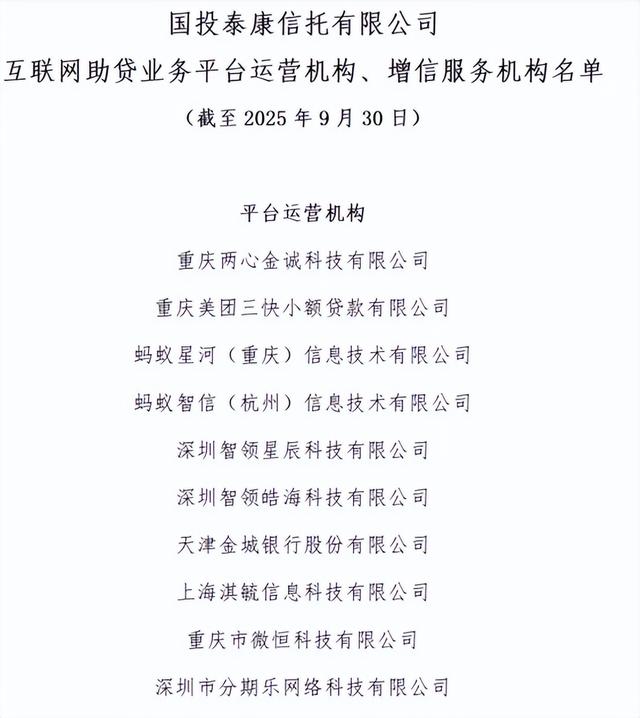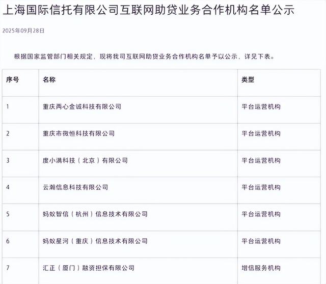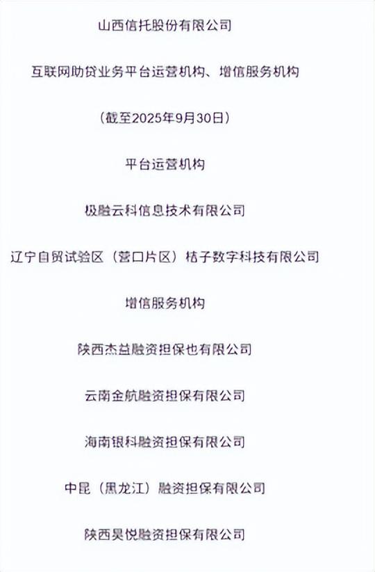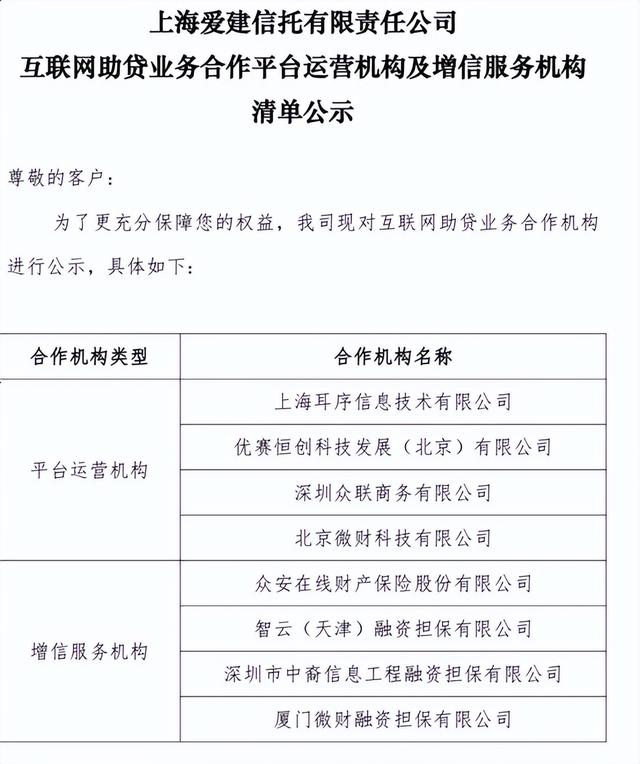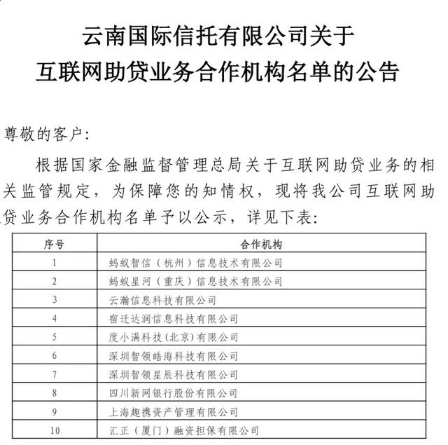 消金界统计,目前已有14家信托披露合作助贷机构名单,分别为中诚信托、国投泰康信托、上海爱建信托、交银国际信托、华能贵诚信托、云南国际信托、山西信托、中粮信托、天津信托、华鑫国际信托、粤财信托、五矿国际信托、上海国际信托和陕西省国际信托股份有限公司。