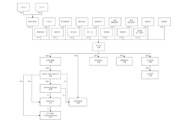 翻阅招股书不难发现,新琪安的股权架构中带有典型的家族色彩。截至本次IPO前,新琪安的创始人王小强直接持有该公司6.9%的股份,并通过聚合兴投资持股6.8%,与其配偶丁丹通过新琪安实业持股41.1%。
