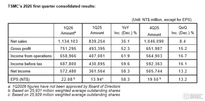 台积电赚麻了!Q1净利暴增58%,中东局势难挡AI热潮