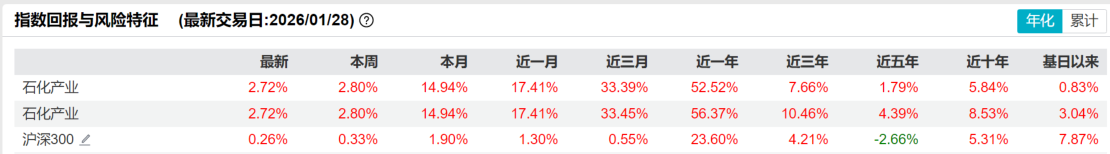 业绩方面,该基金跟踪的中证石化产业指数近1月涨幅17.41%,近1年涨幅52.52%,显著跑赢沪深300,表现亮眼。