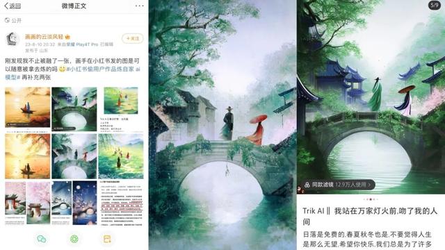 早在今年8月,画师“是雪鱼啊”就曾在社交平台指出自己的原创图被小红书旗下AI绘画产品Trik喂图洗稿,随后,又有三位画师公开指出同样的问题。