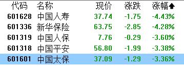 保险板块领跌,中国人寿、新华保险跌超4%,中国人保、中国平安、中国太保等跟跌。