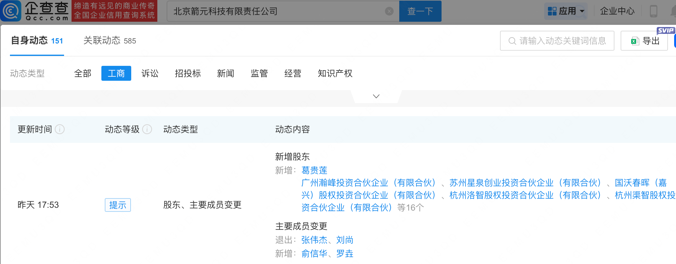 企查查APP显示,近日,北京箭元科技有限责任公司发生工商变更,新增江苏高投毅达绿色转型产业投资基金(有限合伙)、上海宽桥恒松二号企业管理合伙企业(有限合伙)等为股东,同时主要人员发生变更。企查查信息显示,该公司成立于2019年,经营范围包含:运载火箭及其他航天器、航空航天的技术开发、技术转让、技术咨询、技术服务、技术检测等。