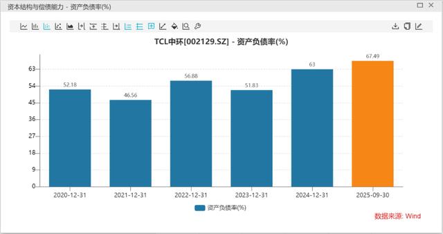 截至2025年三季度末,TCL中环的总负债超过839亿元,资产负债率升至67.49%。