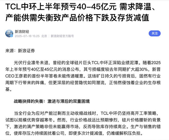 与其说TCL中环是输给了周期,不如说是在行业寒冬里,TCL 中环困在路径依赖里,结果不仅没能卷死对手,反而把自己卷成了“重伤”。