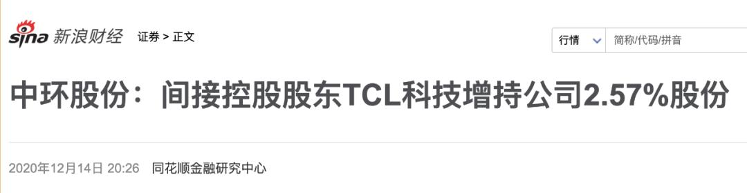 2020年12月14日,彼时还未更名的中环股份(现在的TCL中环)发布公告显示,在2020年11月至12月期间,TCL科技便通过集中竞价和大宗交易方式累计增持了上市公司约7803万股,占当时总股本的2.57%。增持成本不得而知,但在公告披露的增持时段,TCL中环的股价在17-18元/股之间,增持成本大家可以自行测算。