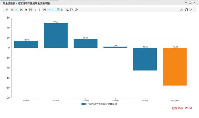 更要命的是现金流。2025年前三季度,TCL中环的经营活动产生的现金流净额是-75.31亿,同比大幅下降。