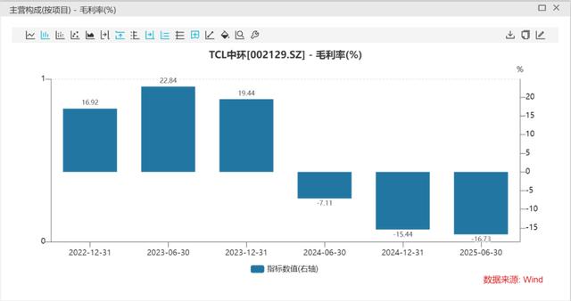 除此之外,硅片价格跌得比生产成本下跌还快。2025年上半年,TCL中环的硅片毛利率竟跌至-16.73%。