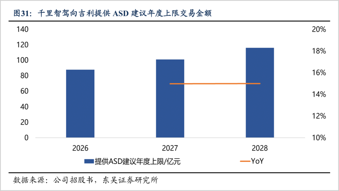 东吴证券就指出,千里科技通过千里智驾仅向吉利提供L2-L4的全栈端到端智能驾驶解决方案,收入指引预计达到百亿(2027年)量级。