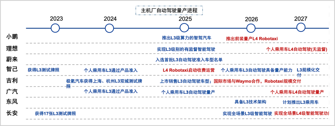 而蔚来、小鹏、吉利、鸿蒙智行等普遍将2025-2026年作为量产关键期,预示着L3商业化窗口期已明确。全球来看,头部Robotaxi厂商也逐步从无人化示范运营向商业化过渡,2026年也被视为Robotaxi规模化元年。