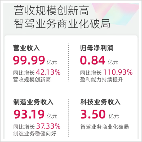 根据最新发布的2025年业绩报告,公司营收利润双增长,更令外界关注的是,一系列AI智驾相关业务推进和高阶辅助驾驶系统的量产上车,科技业务实现3.5亿元的突破。