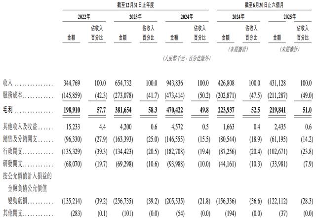 业绩方面,2022年、2023年、2024年度和2025年上半年,暖哇科技的营收分别约为人民币3.45亿元、6.55亿元、9.44亿元和4.31亿元,毛利分别约为1.99亿元、3.82亿元、4.70亿元和2.20亿元。