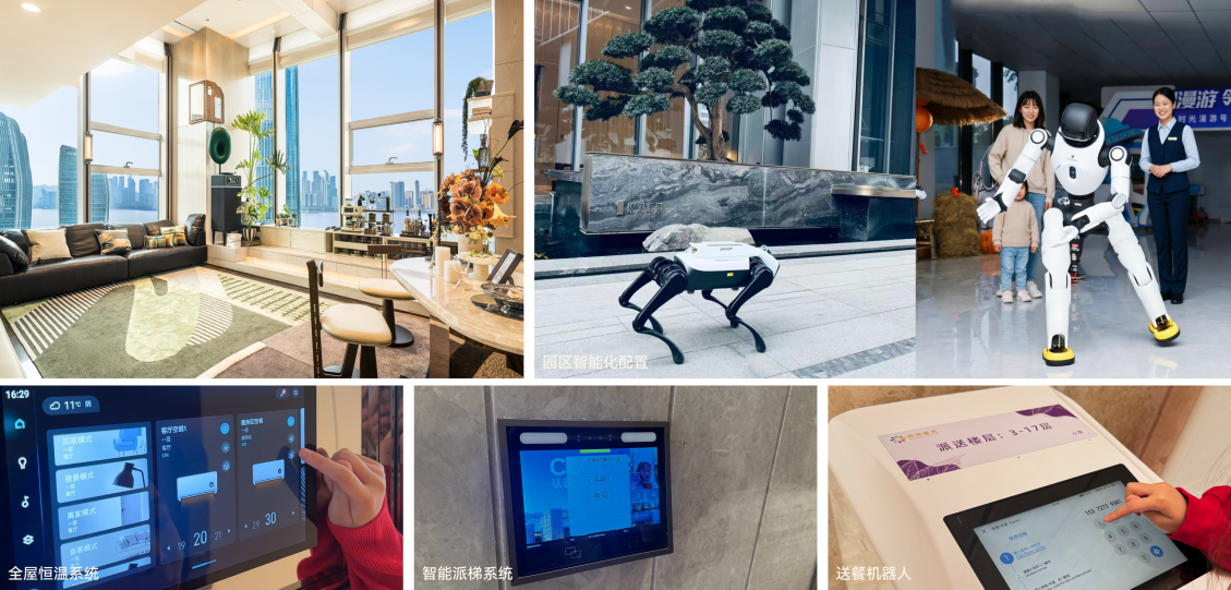 再说产品本身。众安在杭州IOC的大平层产品全面落地了“五衡”标准——衡温、衡氧、衡湿、衡洁、衡静。毛细管网加全屋新风,能耗比传统中央空调低30%。项目内部集成了垂直交通智能调度系统及智慧安防体系,将超高层居住体验提升至新高度。还有淮北和源府项目做了270度边厅户型,将更多风景与阳光引入日常,是众安对“好房子”空间体验的又一次探索。