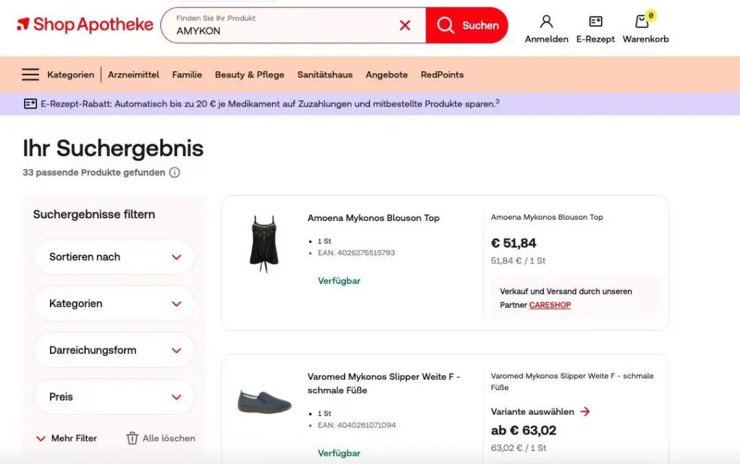 此外,德国主流网络药店包括apodiscounter、Shop Apotheke、aponeo等,搜索后发现均无该品牌的产品售卖。