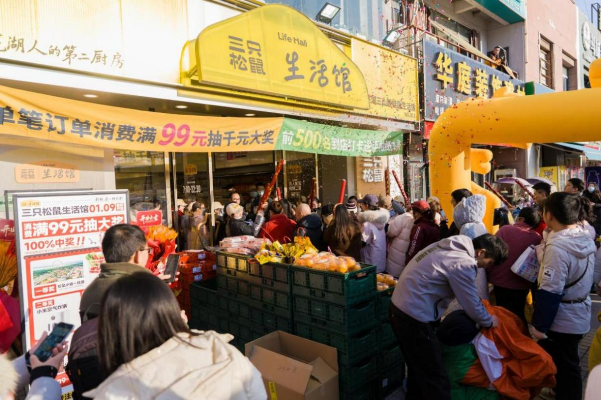 凭借差异化竞争优势,三只松鼠生活馆蕴藏巨大市场潜力:2025年6月,首个生活馆样板店落地,开业三天销售额突破100万;11月,首个旗舰店芜湖金鹰生活馆开业,三天销售额再破126万,辐射周边2.4万个家庭。截至2026年1月30日,三只松鼠生活馆已在皖苏两省核心区域累计布局22家门店,涵盖1家旗舰店、15家标准店、6家mini店,呈现高密度渗透态势。
