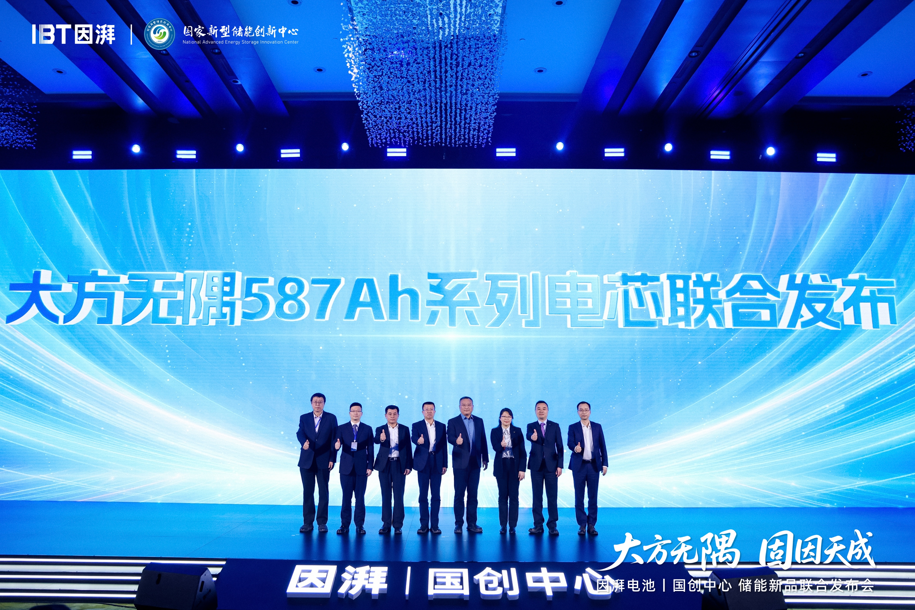 在全场瞩目下,因湃正式发布全新 “大方无隅” 系列 587Ah 储能电芯,包含浩瀚版(液态)电芯与乾坤版固液混合(半固态)电芯两款核心产品,以技术突破填补行业高端安全储能产品空白。