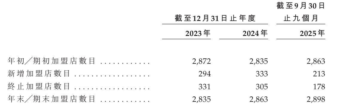 即便如此,依旧有不少加盟商因无法接受“赔本赚吆喝”而闭店出走。结合招股书可知,2024年该公司虽然新增了333家加盟店,但同时也有305家加盟店终止运营,最终一年内加盟店的净增长数量不过28家,门店扩张遇阻。