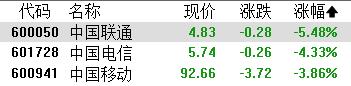 消息面上,近日,财政部、国家税务总局发布《关于增值税征税具体范围有关事项的公告》,规定自2026年1月1日起,在中华人民共和国境内,利用固网、移动网、卫星、互联网,提供手机流量服务、短信和彩信服务、互联网宽带接入服务的业务活动适用的税目由增值电信服务调整为基础电信服务,对应增值税税率由6%调整至9%。瑞银发表报告指出,料对中资三大电信营运商盈利有显著负面影响,因上述相关收入占三家电信营运商2025年预估服务收入的45%至60%。