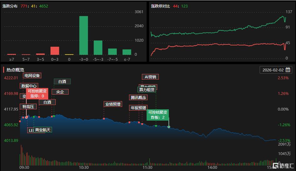 盘面上,国际贵金属延续暴跌,贵金属、有色金属板块现跌停潮,湖南黄金等股跌停;半导体板块重挫,中微半导等十余股跌逾10%;电信运营商低迷,中国联通跌超5%;汽车股、油气开采及服务、钢铁、存储芯片、可燃冰及化学原料等板块跌幅居前。