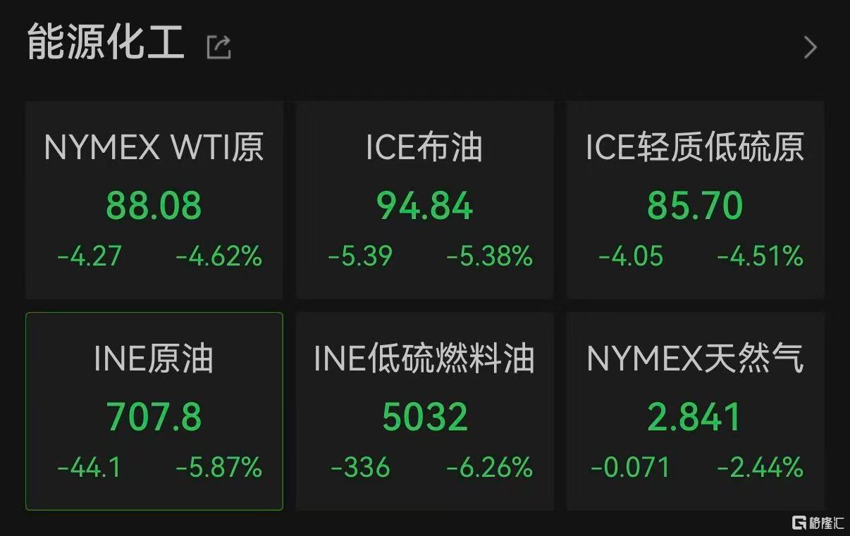 原油市场,WTI原油跌到了88.08美元/桶,日内跌4.62%,布伦特原油跌到了94.84美元/桶。