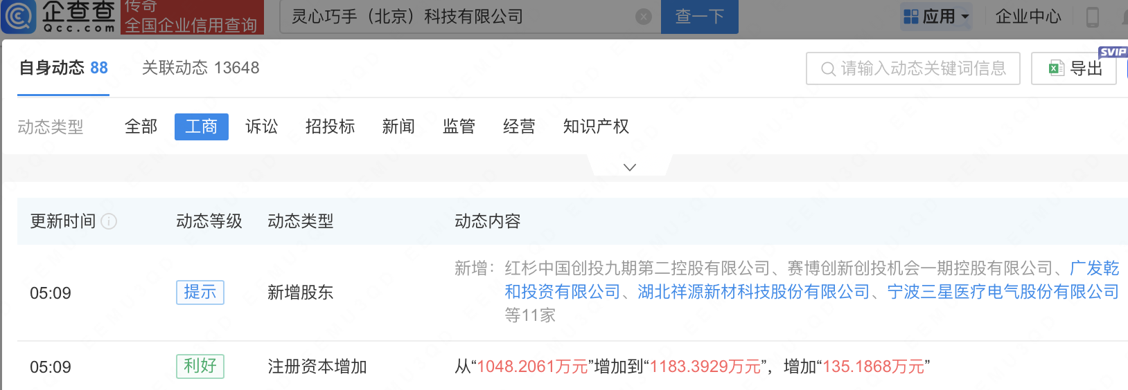 企查查APP显示,近日,灵心巧手(北京)科技有限公司发生工商变更,新增东方精工(002611)、祥源新材(300980)、三星医疗(601567)、晶华新材(603683)等为股东,同时注册资本增至1183.39万元。企查查信息显示,该公司成立于2023年,经营范围包含:人工智能公共服务平台技术咨询服务;人工智能公共数据平台;电机制造;智能机器人销售等。公开信息显示,灵心巧手专注于灵巧手和云端智能核心技术,通过打造具身智能平台,推动2B和2C市场发展。