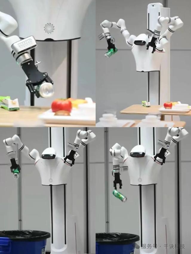 搭载千诀类脑大模型的机器人自主执行餐桌清洁任务