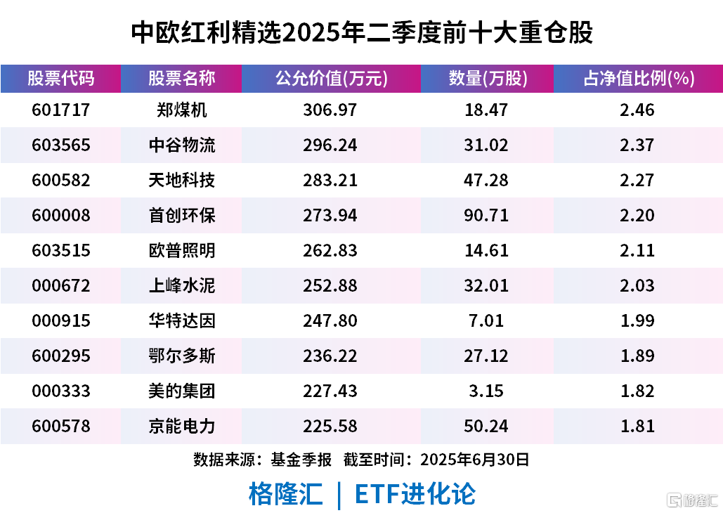 具体来看,截至二季度末,该基金前十大重仓股为:郑煤机、中谷物流、天地科技、首创环保、欧普照明、上峰水泥、华特达因、鄂尔多斯、美的集团、京能电力。