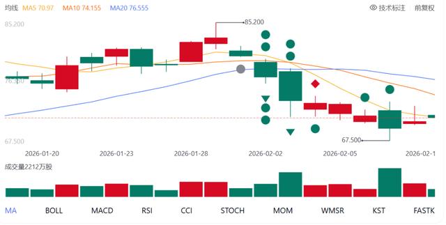 2月9日Seedance2.0引爆全网当天,快手股价一度大跌5%,盘中最低下探至67.5港元。