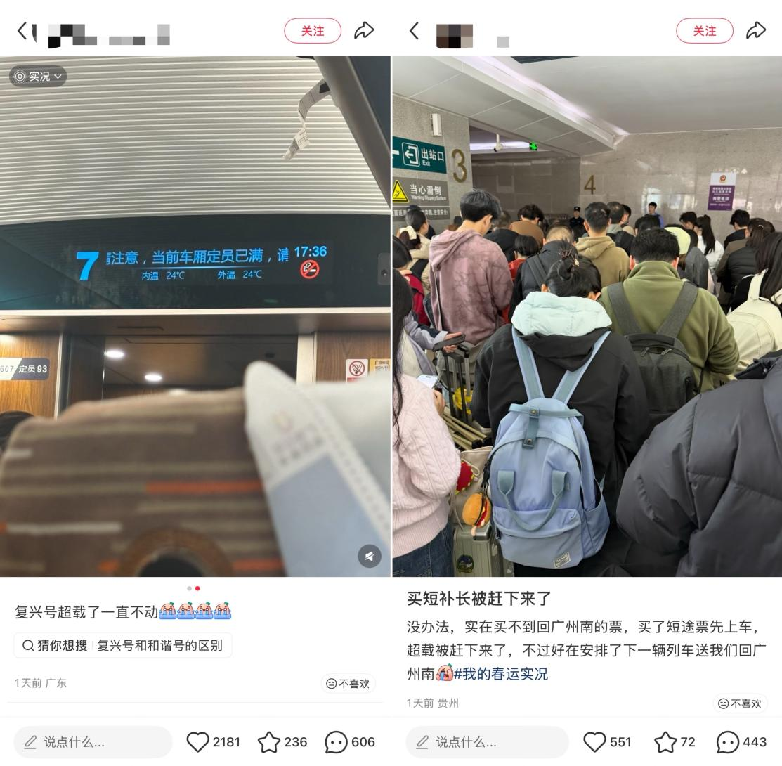不过,并非所有尝试“买短乘长”的旅客都能顺利返程。社交平台上,有不少网友发帖表示,部分班次的高铁因人员超载无法启动,还有旅客表示,“买了短途票先上车,最终因超载被赶了下来”。